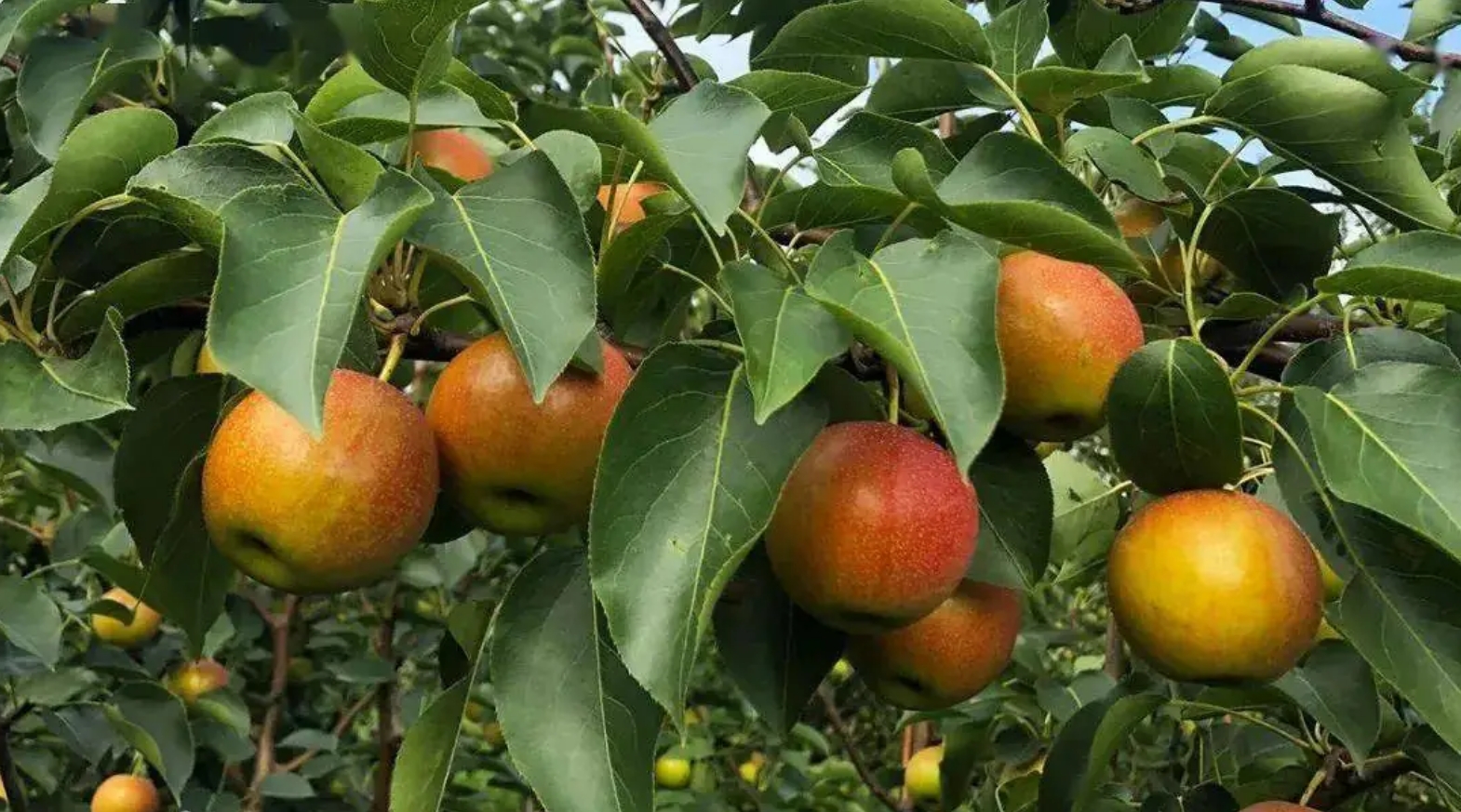 南果梨 形态特征 南果梨幼树枝干呈暗黄褐色,皮孔较稀疏。成年树树皮呈灰褐色,光亮,皮孔长圆形,中大,灰白色,分布不均。芽早熟,叶芽细长,圆锥形,锐尖,有的芽可萌发2~3片簇状副梢。先端芽多贴附着生,下 ...