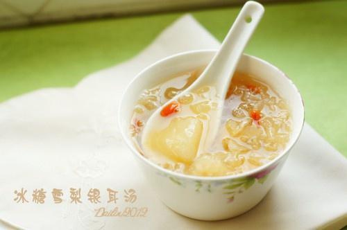银耳素来有“平民燕窝”之美称,据说长期吃有美白祛斑之功效。用料 雪梨2个银耳冰糖适量枸杞数颗冰糖雪梨银耳汤的做法 银耳提前用冷水泡发3-4个小时左右,然后撕成小块状备用。雪梨两个,洗净后去皮、去核切块。将切 ...